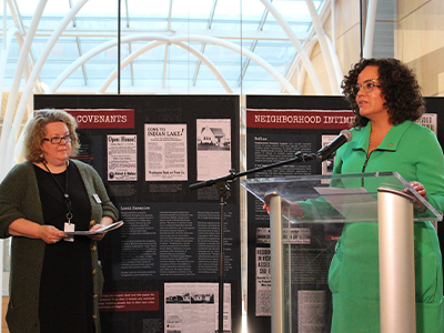 The best way to create a brighter future is to understand the past. That’s why First Merchants Bank is a proud sponsor of “Unwelcomed: A Fair Housing History of Sales & Lending Discrimination,” a new exhibit by the Fair Housing Center of Central Indiana (FHCCI), hosted at the Indianapolis Central Library. Jadira Hoptry, Director of Community Lending and Development with First Merchants, joined Indianapolis Mayor Joe Hogsett, Diane M. Shelly from the U.S. Department of Housing & Urban Development (HUD), and other dignitaries at the exhibit’s grand opening on April 11 and spoke about the important role banks play in repairing the harm discriminatory practices wrought.